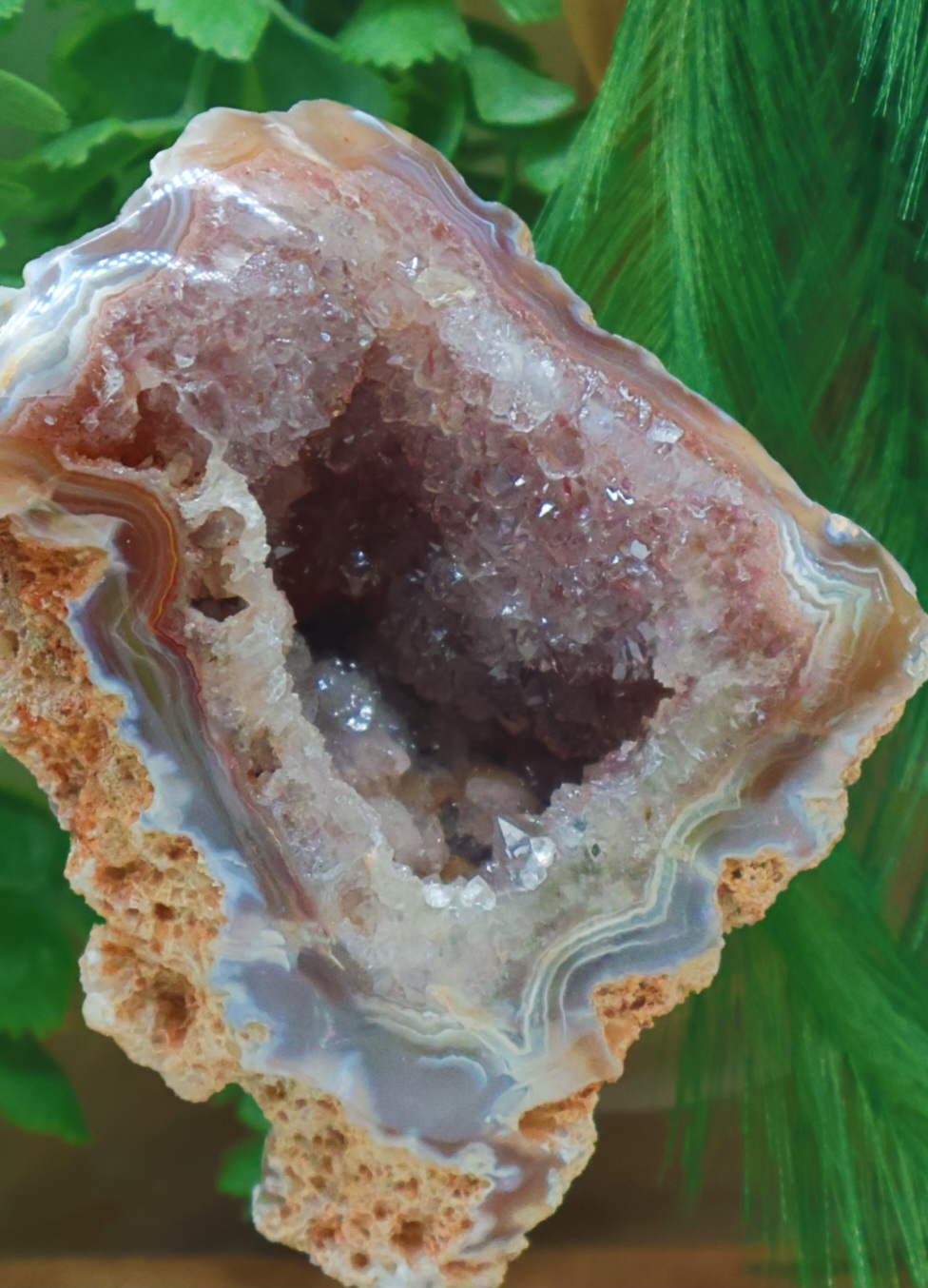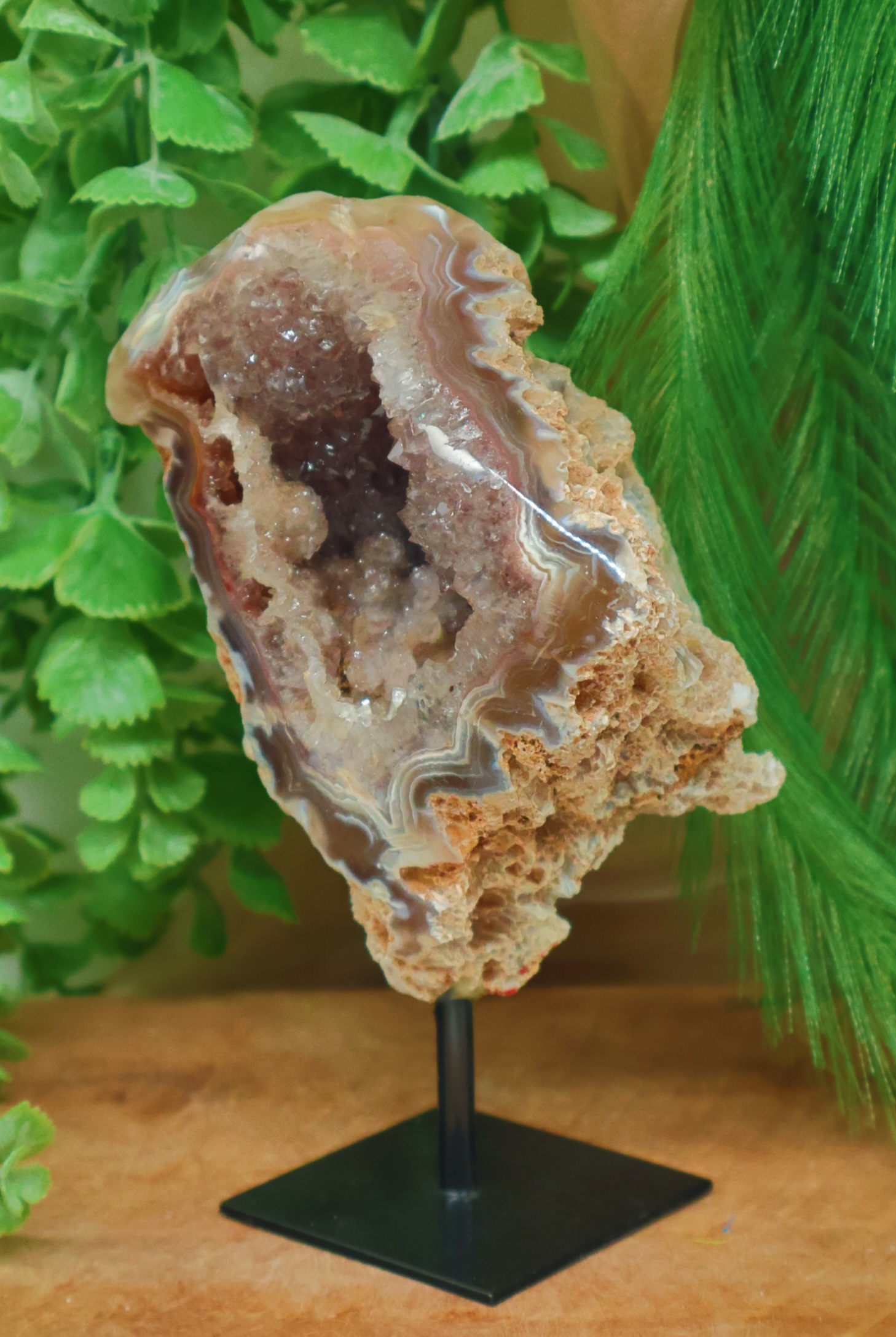 Dit geweldige stuk bestaat uit agaat met een kern van kristallen. Dit stuk heeft een gewicht van 791gr met een hoogte van 18cm.