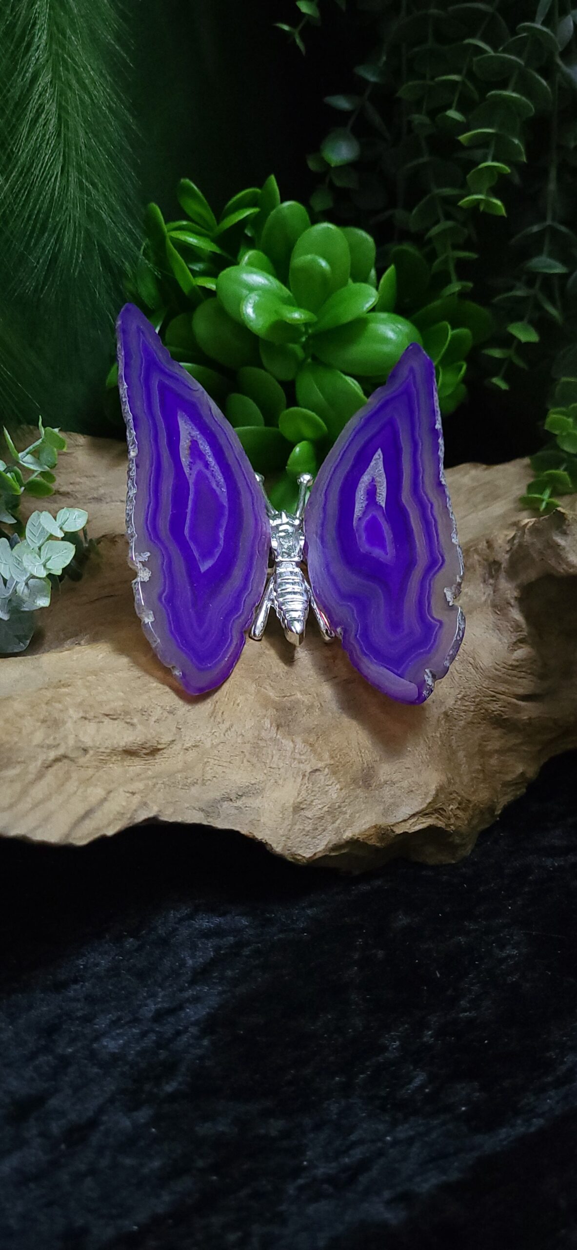 Deze prachtige paarse Agaat Vlinder staat mooi in elke kamer en ruimte. Deze vlinder is gemaakt van geverfd Agaat. Bij deze vlinder is het niet mogelijk om de pootjes aan te passen.