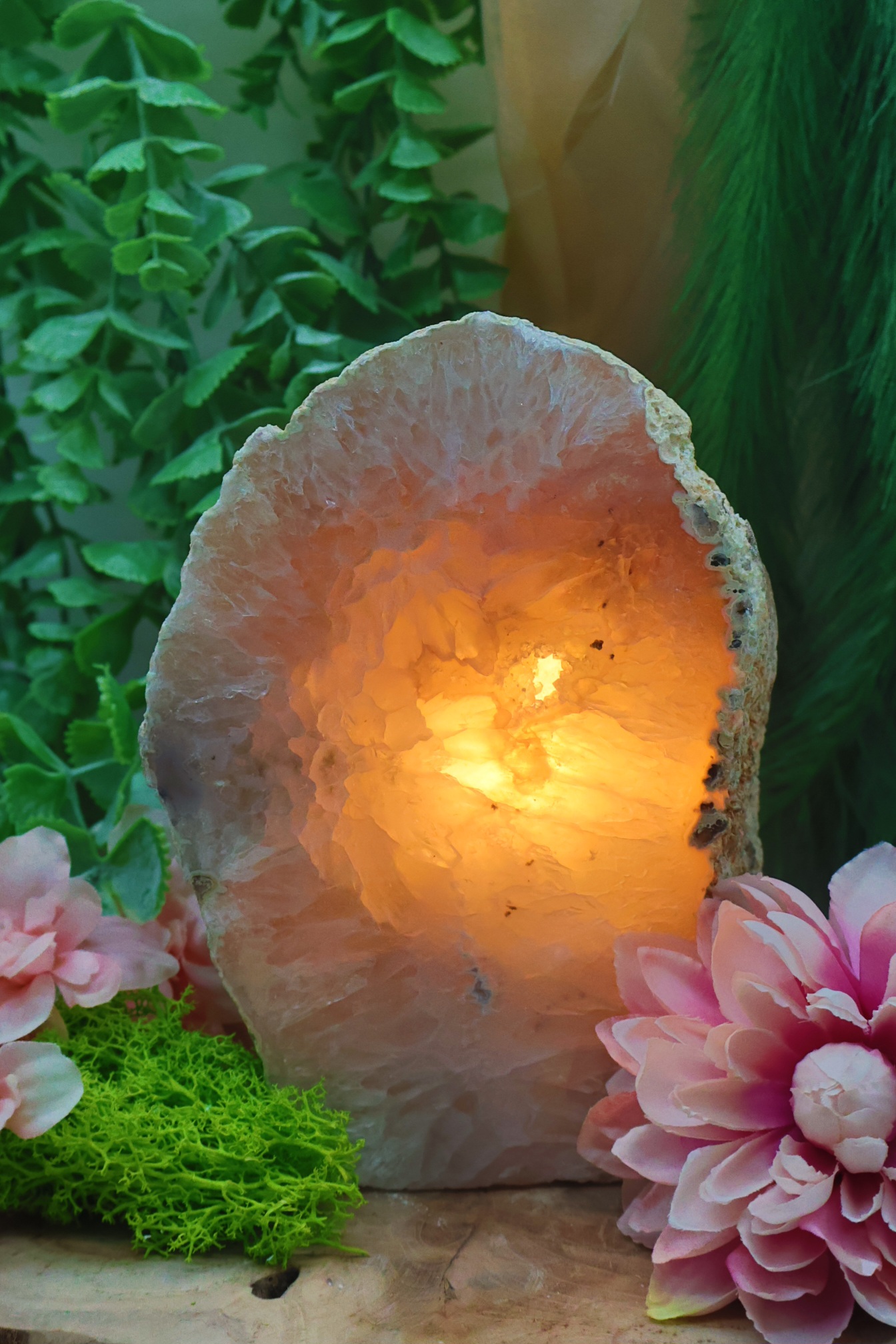 Deze agaat lamp heeft een hoogte van ongeveer 18,5cm met een gewicht van 2428gr. Deze lamp wordt geleverd incl. elektra.