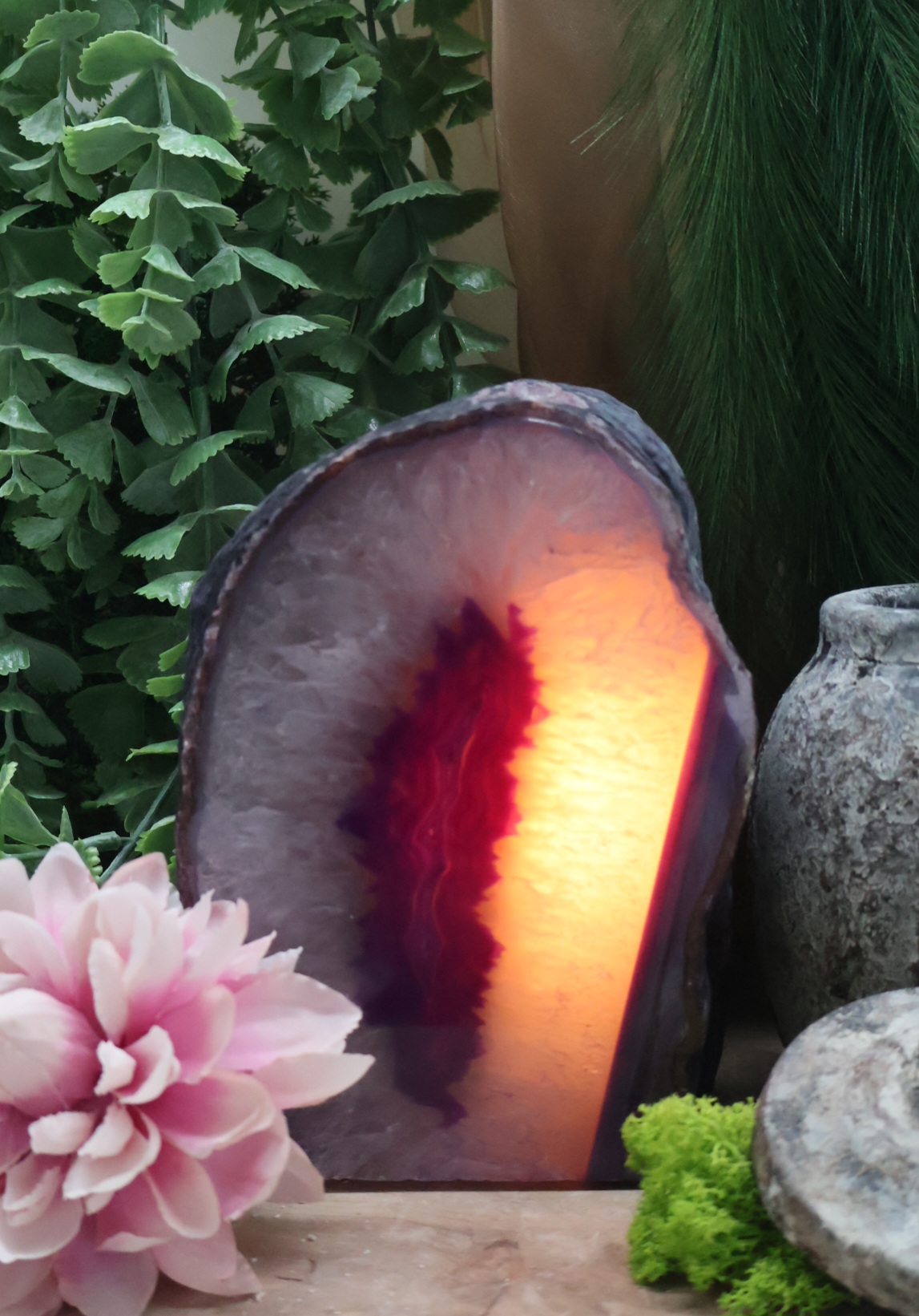 Deze paarse agaat lamp heeft een hoogte van 16,5cm met een gewicht van 3516gr. Deze lamp wordt geleverd incl. elektra.