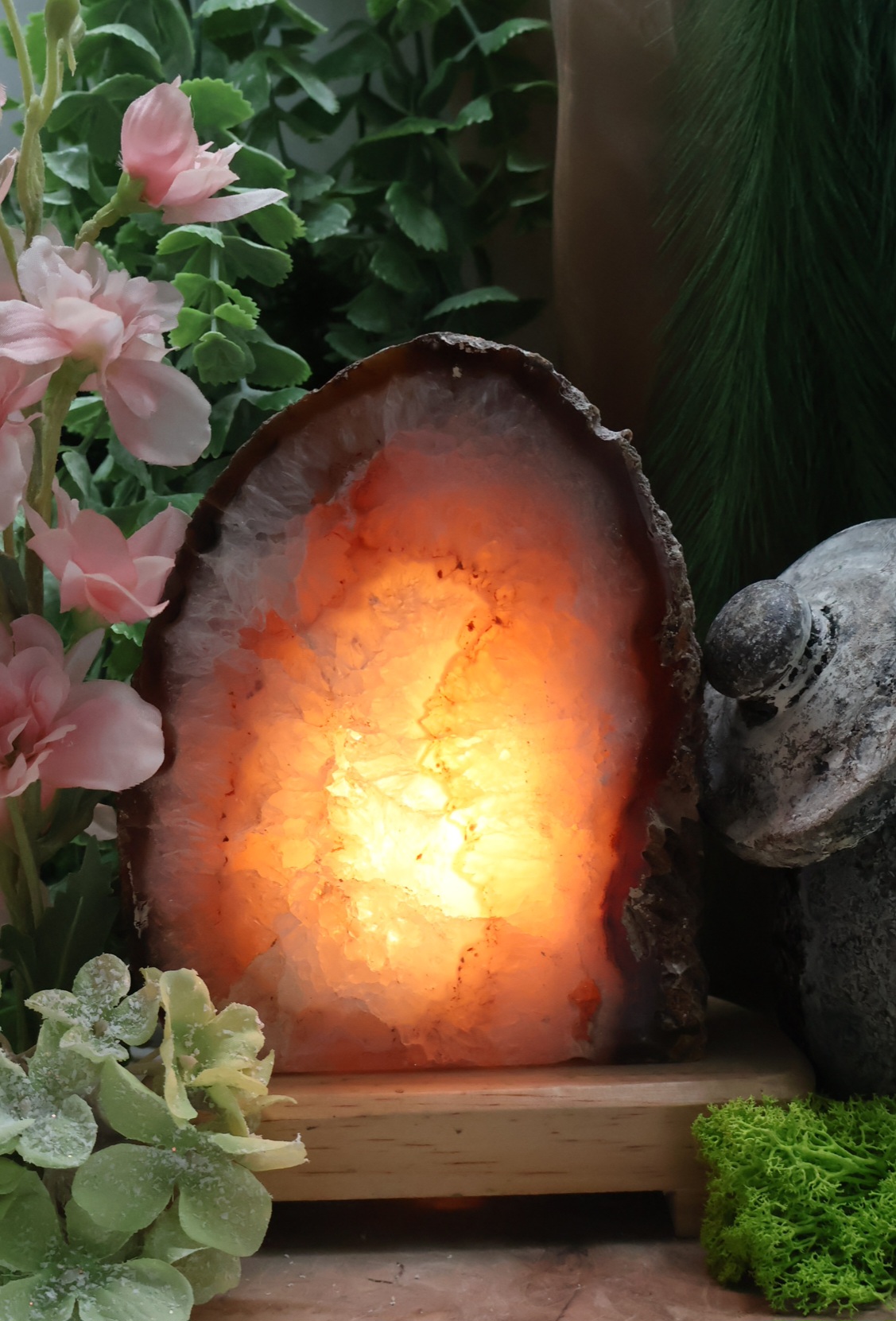 Deze Agaat lamp is 19,5cm hoog en heeft een gewicht van ongeveer 2407gr. Deze lamp wordt verstuurd incl. elektra.